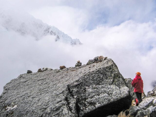 We’re starting the day really early, with a hot drink to get us going and watch the beautiful sunrise over the mountains and glaciers. After that, we’ll pack up our stuff and have a delicious breakfast. This is going to be one of the hardest days of the trek. But don’t worry, the guides and horses are there to help you every step of the way. We’re heading for Huayraqmachay (3,900 m / 12,795 ft), where we’ll have lunch and catch our breath. You’ll be hiking surrounded by the cloud forest and views from way up high, so hopefully, that keeps you motivated. From there, the trek goes downhill to Chaullay (2,900 m / 9,514 ft), which is our last stop for the day. We’ll be camping here, surrounded by mountains and clouds. We’ll be in comfortable cabins again, with hot showers and Wi-Fi. It’s a great way to end a tough day. We’ll hike 23 km today, reaching a highest elevation of 4,620 m. Our campsite is at 3,900 m. The weather can be cold but also gets warm. The trail is rocky, dusty, and slippery, so you really need to have good trekking shoes. And just so you know, all three meals—breakfast, lunch, and dinner—are included.